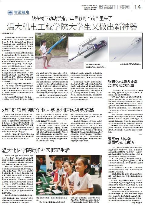 截至目前,本报连续报道银河 机电工程学院大学生的发明制造已有 20 多篇。该学院现设有机械工程、工业工程、车辆工程等3 个本科专业和机械工程国际化专业,学院重视学生创新创业能力,并着力打造科技创新平台。