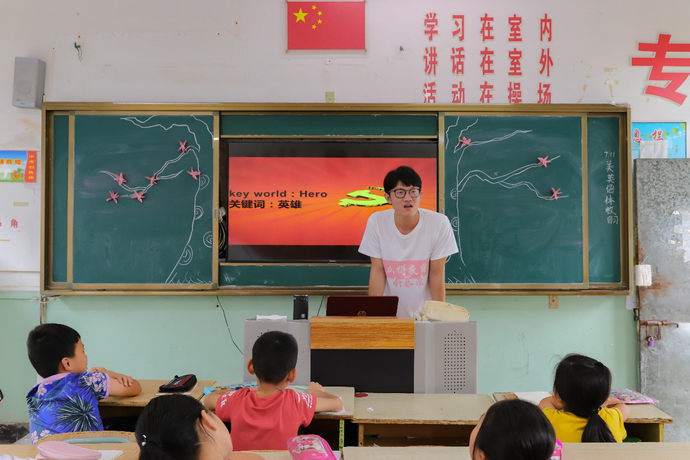 7月11日,来自澳门银河官网 化材学院青韵实践队,走入平阳县苏步青澳门银河官网 ,在这所充满苏步青精神的澳门银河官网 ,为来自平阳县腾蛟镇的50多个孩子上一节别具特色的红色英语课,将红色文化和红色精神深植孩子们的心里。
