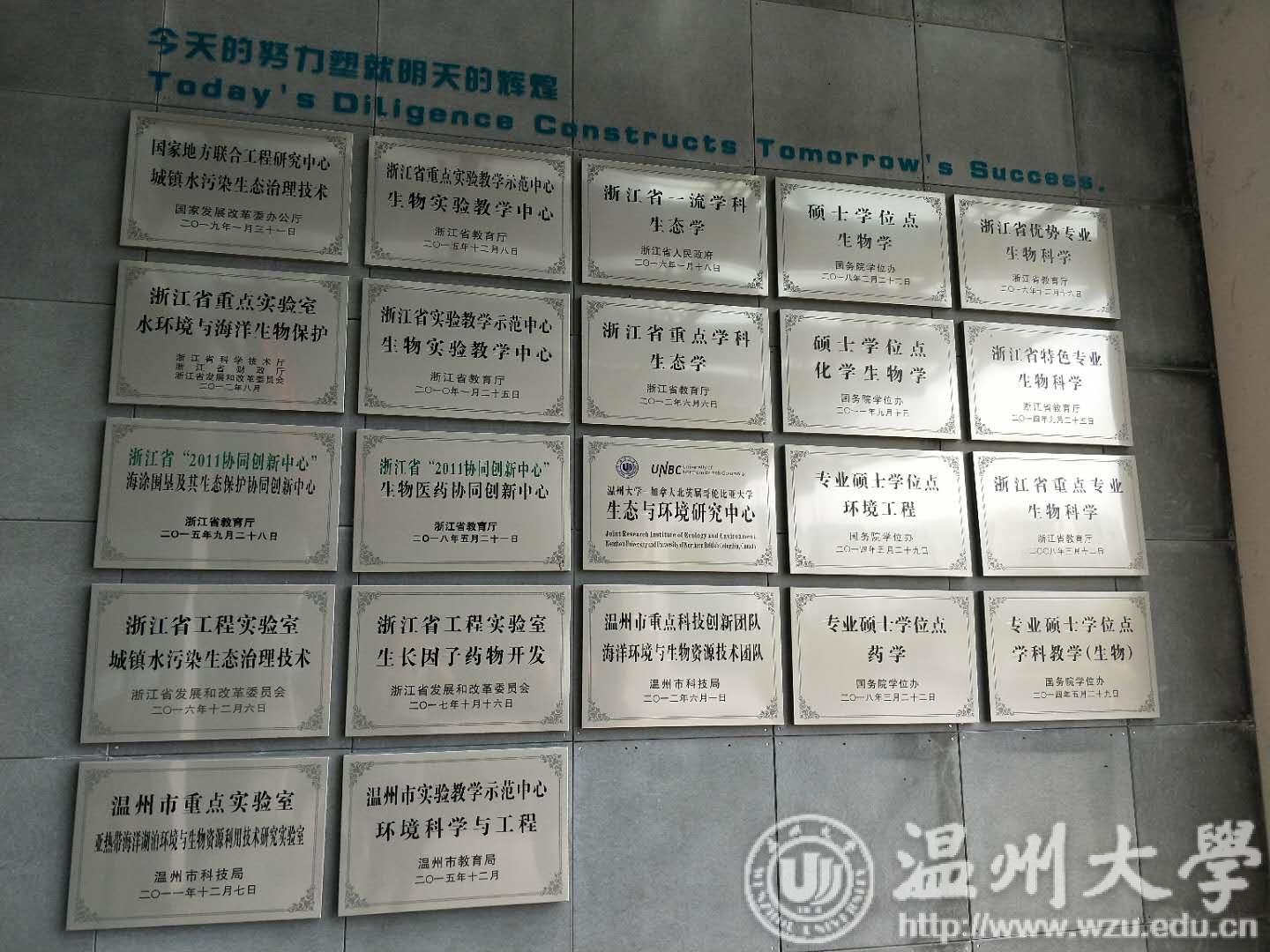 浙江省水环境与海洋生物资源保护重点实验室位于澳门银河官网 生命与环境科学学院内,在踏入实验室前,映入眼帘的是大门上的许多招牌,浙江省重点实验教学示范中心、生物实验教学中心、海涂围垦及其生态保护协同创新中心、浙江省“2011协同创新中心”、城镇水污染生态治理技术浙江省工程实验室、城镇水污染生态治理技术国家地方联合工程研究中心……这些招牌的最上方刻着两行中英文字:“今天的努力塑就明天的辉煌 Today's DiLigence Constructs Tomorrow's Success ”。