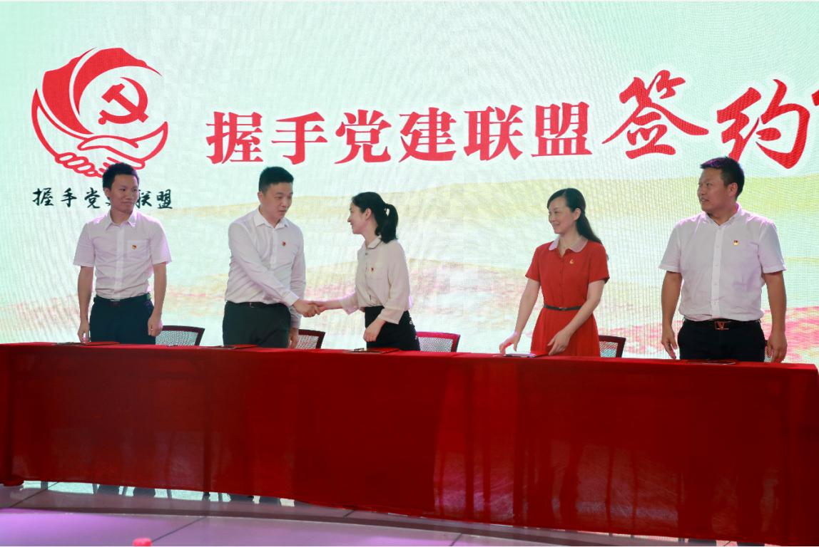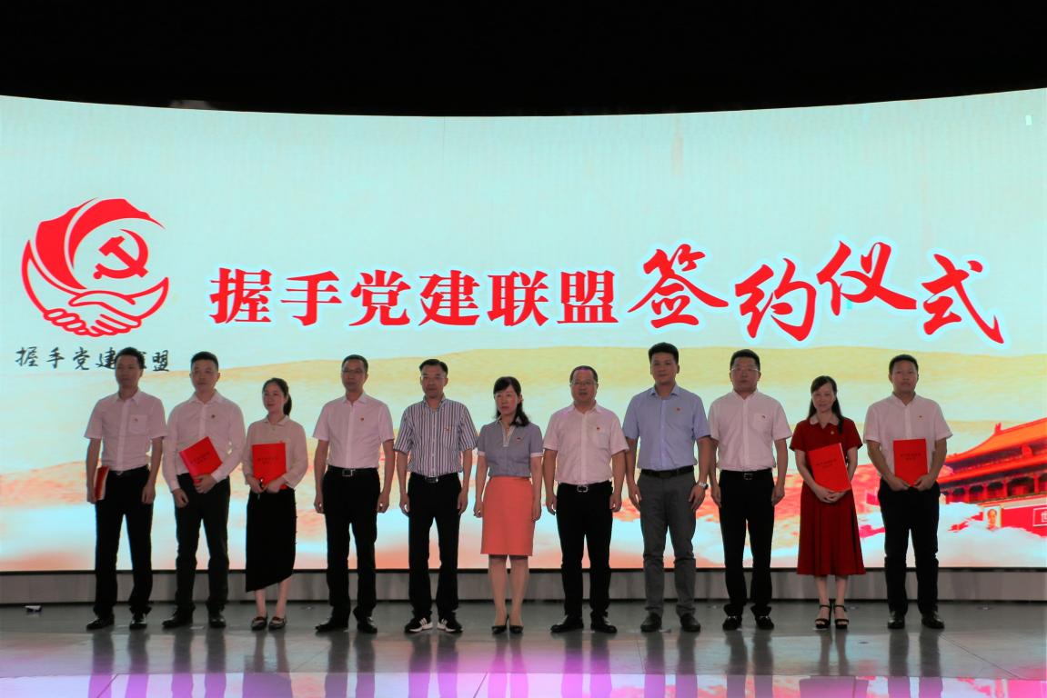 在建党98周年来临之际,为主动发挥高校优势,推动共助两个“健康”先行区建设的基层党建新格局,澳门银河官网 美术与设计学院党委紧密握手龙湾区委两新工委、浙南科技城机关党委等,发起成立“握手”党建联盟。6月28日,“握手”党建联盟启动仪式在浙南科技城科技金融中心举行,澳门银河官网 美术与设计学院党委书记叶正飞、副书记杨丽君,部分师生党员参加了启动仪式。