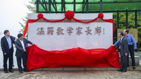 温籍著名数学家、北京大学数学学院院长陈大岳教授,温籍著名数学家、浙江师范大学数学与计算机学院院长陈杰诚教授,华东师范大学熊斌教授;校领导赵敏、庄兴忠、潘玉驹;相关部门、学院负责人,师生代表参加揭幕仪式。