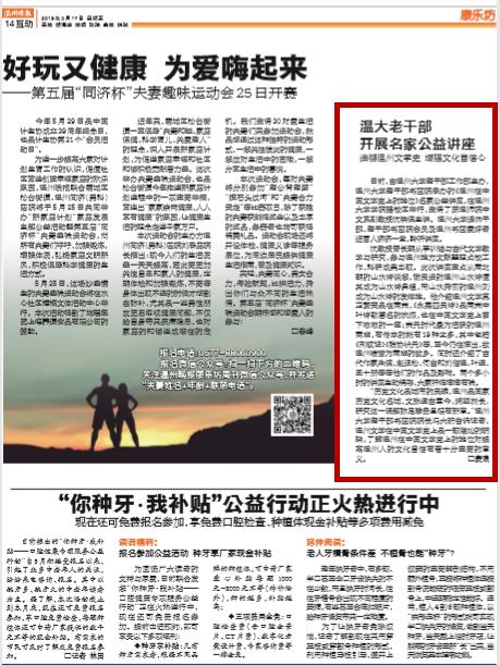 沈教授曾长期从事训诂与古代文学教学与研究,担任市政协文史委员会副主任,参与温州地方文献整理点校工作。他科研成果丰硕,知识渊博,谈笑风生。讲座重点从南北朝的山水诗说起,谢灵运的温州山水诗使其成为山水诗鼻祖,而山水秀丽的温州则成为山水诗的发祥地。温州文学真正繁荣是在南宋,《永嘉四灵诗》是南宋中叶诗歌著名的流派,也在中国文学史上留下浓浓的一笔。接着,沈老师又重点介绍宋元时代最为活跃的温州南戏,有传本的就有19种之多,其中《荆釵记》、《张协状元》等,至今仍在演出,故温州被誉为南戏的故乡。两个多小时的讲座生动精彩,大家听得津津有味。
