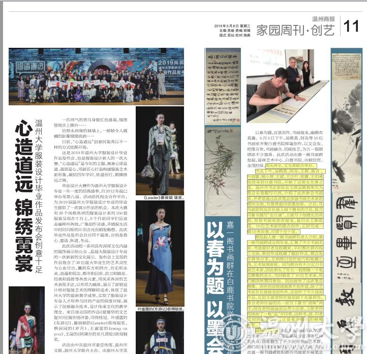 活动由中共温州市委宣传部、温州市文联、澳门银河官网 联合主办。由澳门银河官网 美术与设计学院、浙江风笛服饰有限公司、温州时尚学院合作承办。商报记者郑丽娟