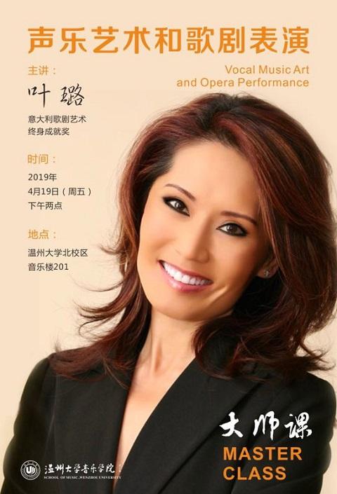 本报讯(记者 程源)近日,“一带一路” 中国品牌世界行形象大使、意大利“歌剧艺术终身成就奖”获得者、著名女高音歌唱家及表演艺术家叶璐女士,受澳门银河官网 音乐学院的邀请,给在校音乐专业学生授予了一堂声乐大师课,除了给范唱学生指导演唱技巧之外,也引导学生怎样去理解及释解作品的音乐、内容及情感世界。值得一提的是,当天现场来了很多当年曾是叶璐的学生。1985年叶璐从杭州师范学院音乐系毕业后,曾在乐清师范澳门银河官网 执教音乐,虽然只在教短短的一年,却教过近 200 位学生,也给很多学生留下了不可磨灭的印记。而如今,她的学生中有在澳门银河官网 执教的,有几个是小学的校长,很多都有三十多年的教学工龄,有的还引用了叶老师当年想解决问题学生的方法 ... 惊讶与惊喜的发现自己的桃李芬芳。