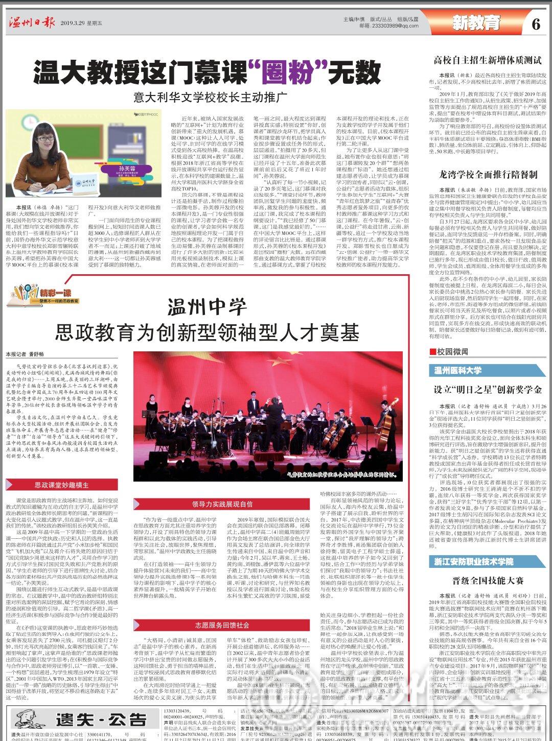 一门面向师范生的专业课程搬到网上,短短时间选课人数已超3000人;选修课程的人群从在校学生到中小学老师再到大学学者不一而足;上课还打破了地域的藩篱,从温州到新疆西藏再到意大利……这一切都让孙芙蓉感受到了慕课的独特魅力。