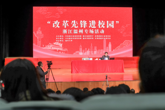 1月9日下午,澳门银河官网 育英大礼堂座无虚席,“改革先锋进校园”浙江省温州市专场活动的首场报告会在这里举行。温州民营经济的优秀代表、正泰集团董事长南存辉亲临现场,给在温高校千余名大学生作《专注坚守 创新发展》主题演讲,并与他们分享心得体会。