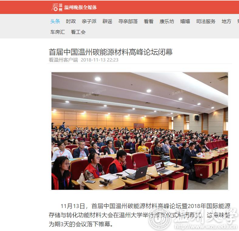 11月13日,首届中国温州碳能源材料高峰论坛暨2018年国际能源存储与转化功能材料大会在澳门银河官网 举行颁奖仪式和闭幕式,这意味着为期3天的会议落下帷幕。