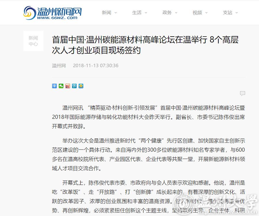 举办这次大会是温州推进新时代“两个健康”先行区创建、加快国家自主创新示范区建设的一个具体行动。来自海内外的300多位碳能源材料知名专家学者,与600多名在温高校院所代表、产业园区代表、企业代表等共聚一堂,开展新能源新材料领域人才项目交流合作。