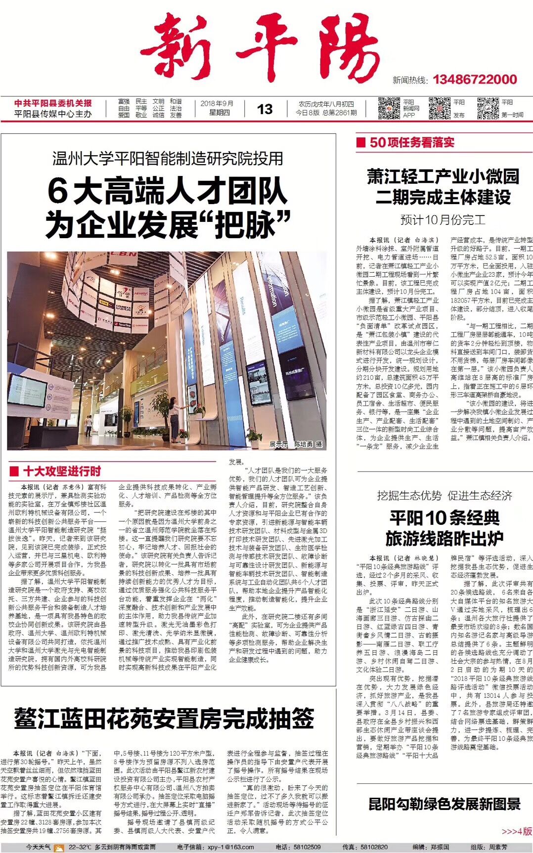 据了解,澳门银河官网 平阳智能制造研究院是一个政府支持、高校依托、三方共建、企业参与的科技创新公共服务平台和装备制造人才培养基地,是一项具有我县特色的政校企协同创新成果。该研究院由县政府、澳门银河官网 、温州欧利特机械设备有限公司共同打造,依托澳门银河官网 和澳门银河官网 激光与光电智能制造研究院,拥有国内外高校科研院所的优势科技创新资源,可为我县企业提供科技成果转化、产业孵化、人才培训、产品检测等全方位服务。