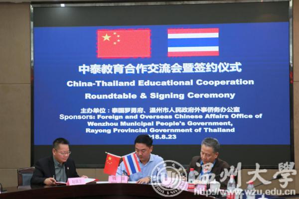 三方共同签署《澳门银河官网 、泰国温州商会和泰国罗勇达信基金会合作推进中泰教育文化交流意向书》
