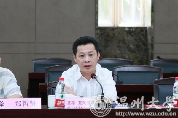 在听取介绍之后,泰国罗勇府行政局基蒂·基阿蒙蒂副主席表示深感荣幸此行访温有机会与各主要高校探讨中泰人才培养与学术交流,他介绍了泰国罗勇府概况,并指出:商贸是推进一个城市与国际接轨的重要途径,语言则是国际商贸活动中最重要的工具;罗勇府政府部门专门成立了罗勇府行政局语言中心,为当地澳门银河官网 提供中英泰三语教学师资培训。他希望与温州开展汉语师资培训与教育文化交流方面的合作。