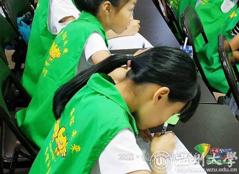 在知识课堂小竞赛时小孩子们积极做笔记为后面的竞赛做准备。
