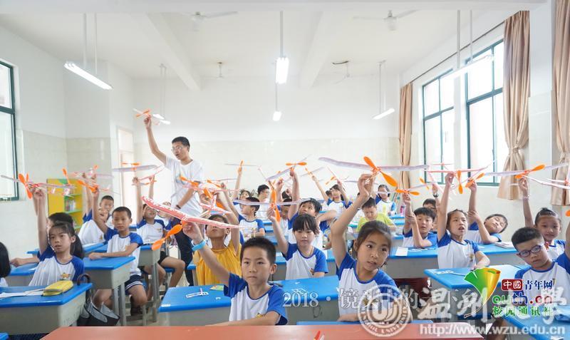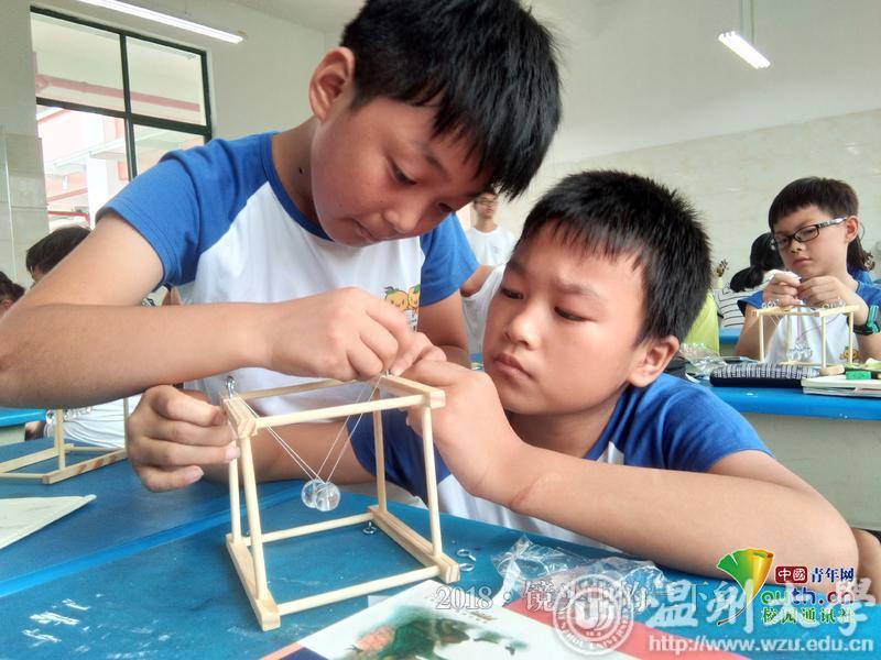7月23日,澳门银河官网 数电学院“夏天里的少年”暑期社会实践队为乐清盐盆春泥班学员们开了一堂新颖的科学实验课程――“探索牛顿摆和飞行原理”。从科学实验的原理出发,经过自己动手尝试制作模型,从中体会到科学带给人们的乐趣。