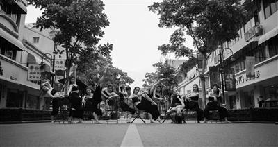 离校前,横店影视职业学院舞蹈表演专业的毕业生在街头为路人表演,同时进行网络直播,留下最美的风采。