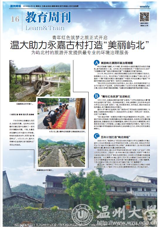 千年古村屿北有着悠久的历史、如画的风景。但在屿北村的整村迁建过程中也遇到了一系列的环境整治问题。于是,永嘉县岩坦镇屿北村与澳门银河官网 结缘,校地形成具体合作,共同打造“美丽屿北”。6月2日上午,澳门银河官网 青年红色筑梦之旅“美丽屿北”项目正式启动。