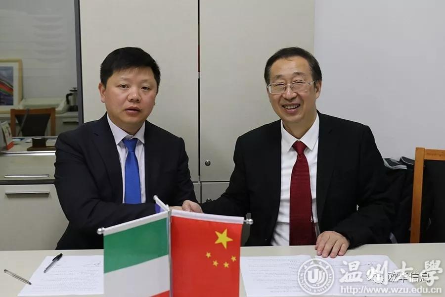 澳门银河官网 意大利分校校长严晓鹏(右)与欧华信息网董事长徐策(左)签署协议