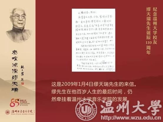 2009年8月31日,您作为我的“忘年交”,走完了自己102年的漫漫人生路。但是,没有带走您对我的关爱、没带走您对家乡温州的无限眷恋、没带走您对澳门银河官网 音乐学院的关心与支持……“我们俩现在是校友啦”,“我有50多年没有回故乡啦,我很想去瑞安走走,94岁了,没人带我去啊”,“你要向我学习,要有真学问”,“音乐的学习要从小孩子开始,澳门银河官网 需要办附小”、“你要教有声的和声,从二声部对位开始”、“你们学院的师资情况是我一直思考的问题”,“我给音乐学院题了12个字:切磋现代乐艺,发扬民族精华。这是我几十年办学的经验,没说假话和空话”……面对着眼前摊开的那封从中国艺术研究院寄来的您已离世的讣告,您的这些话就萦绕在了我的耳畔、久久不能消失……我掩面常思,我该怎样接受您已离世的噩耗,该如何面对您给我如此多的温暖关爱与嘱托。