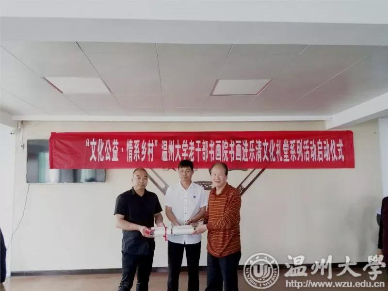 春暖大地,绿意盎然。4月25日,银河 老干部书画院老书画家一行20多人带着17幅书画作品来到乐清市北白象镇琯头文化礼堂,举行“文化公益·情系乡村”银河 老干部书画院书画进乐清文化礼堂系列活动启动仪式。