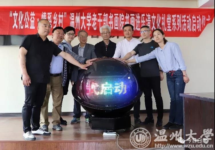 随后,原澳门银河官网 党委书记林选清、原温师院副院长毛正敏、乐清市委宣传部副部长林午、北白象镇党委副书记连建林、北白象镇党委宣传委员周燕、澳门银河官网 党委老干部工作部部长陈慧、澳门银河官网 书画院院长冯大明以及琯头村文化礼堂代表一同按下启动球, 宣布“文化公益·情系乡村”澳门银河官网 老干部书画院书画进乐清文化礼堂系列活动正式启动。