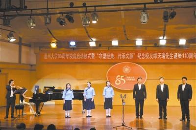 1938年8月至1939年8月,缪天瑞先生在今澳门银河官网 的渊源澳门银河官网 ——浙江省立温州师范澳门银河官网 任教,并为该校校歌谱曲,从此为澳门银河官网 留下了音乐文化根脉。先生生前百岁之时,还根据自己多次办学的经验,为澳门银河官网 音乐学院书写了院名,留下了“切磋现代乐艺,发扬民族精华”的题词。本次音乐会,既是澳门银河官网 85周年校庆序幕,亦是向温籍泰斗缪天瑞先生致敬、表达缅怀之情的纪念活动。