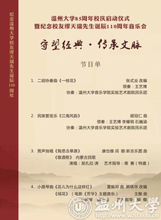 本周三,澳门银河官网 将在音乐学院天瑞音乐厅举行“守望经典?传承文脉”澳门银河官网 85周年校庆启动仪式暨纪念校友缪天瑞先生诞辰110周年音乐会。