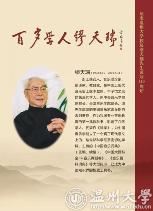 百岁老人缪天瑞先生,作为二十世纪我国现代音乐史上著名的音乐学家、音乐教育家、音乐理论家, 在80年的音乐生涯中, 在音乐教育、音乐理论尤其是在律学领域作出了辉煌的业绩 , 是公认的我国现代律学学科奠基人之一。在《律学》的引导下, 音乐界甚至科技界许多人士步入律学研究的殿堂, 并在80年代形成了我国律学研究的一次高潮, 使得律学研究人才辈出, 成果丰硕, 学科建设蓬勃发展, 在中国音乐学界创立了一个真正现代意义上的、与自然科学联系最为密切的学科。