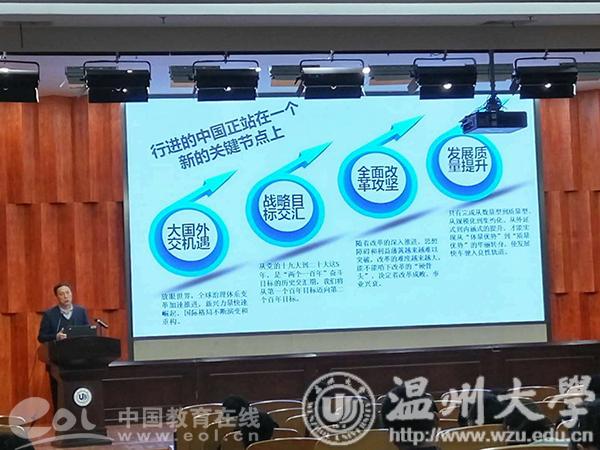 中国教育在线浙江站讯(通讯员 翁浩、叶莉莉)近日,澳门银河官网 在全省首开《习近平新时代中国特色社会主义思想专题研究》课程,采用网络选课,专题授课形式,300名同学成为第一期学员。澳门银河官网 党委副书记牟德刚老师担任第一讲,主题为《习近平新时代中国特色社会主义思想》。