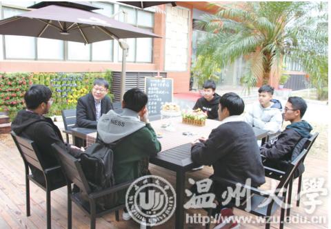 银河 溯初学区的户外咖啡吧内,一场“寝室导师下午茶”正在进行——银河 党校办主任蔡联群正与 C8-104 宿舍的 6 位学生开展主题为“说说大学生活”的开放式交谈。围成一圈的同学们神情专注,又时而放声大笑。“上课与老师会有一些距离感,在这里却没有这种感觉,喝着咖啡,能够和老师像朋友一样聊天,像室友一样亲切地交谈,共同讨论面临的一些问题,感觉很开心。”教师教育学院的陈竺伟同学说。