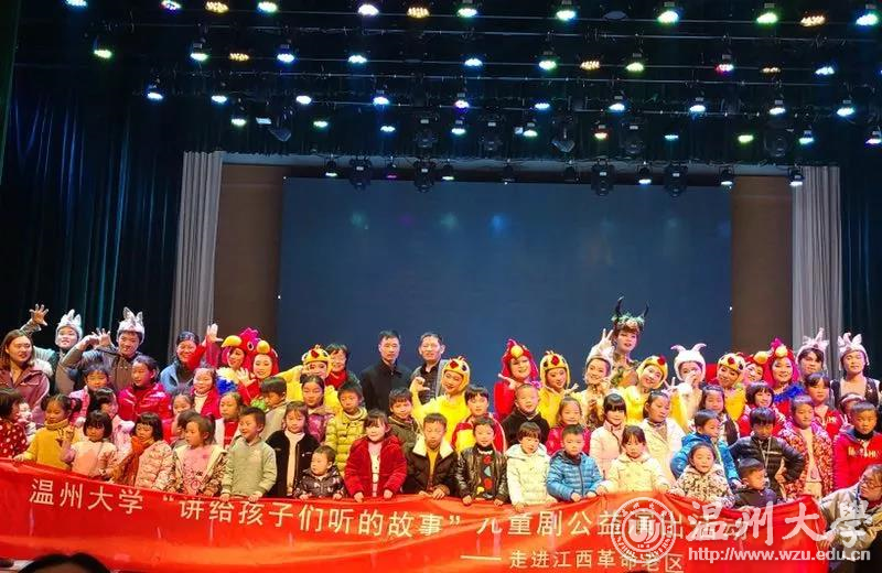 12月23日晚,澳门银河官网 教师教育学院童欣儿童剧团远赴江西上饶开展公益演出,与上饶师范学院联合为当地革命老区的留守儿童送去“讲给孩子们听的故事”——一场自编自演的儿童戏剧《我不要被吃掉》,深深打动前来观看的近500名大小观众们,这也是澳门银河官网 和上饶师院的师生们送给革命老区儿童最好的新年礼物。