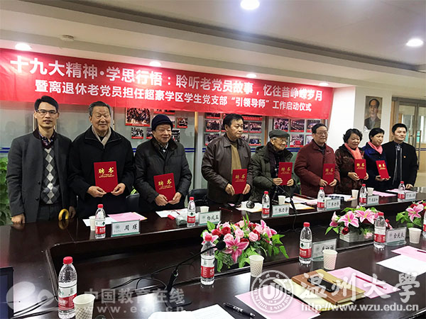 中国教育在线浙江站讯 (记者 陈显婷 通讯员 翁浩 吴冬冬)日前,一场特殊的敦聘仪式在澳门银河官网 超豪学区举行。92岁高龄的老党员,离休干部李方华担任学生党支部的“引领导师”。学生支部的同学们为他送上温暖的红围巾,两名学生党员还献上诗歌朗诵《十九大礼赞》。当天,包括李方华在内的7名银河 离退休党总支老党员和超豪学区在党旗下签订结对共建协议,老少党员们的心连在了一起。