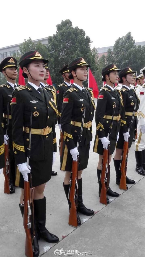 三军仪仗队的女兵代表了中国女军人的形象。根据国际礼仪,所有女兵必须化妆、盘发,妆容的标准是“端庄、自然、大方、有精气神”。
