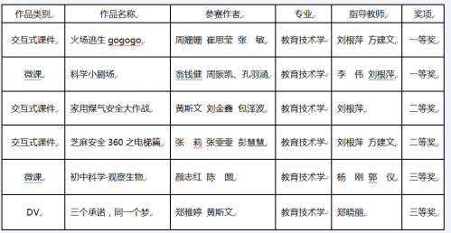 省第十六届大学生多媒体作品设计竞赛结果今天上午揭晓,澳门银河官网 教师教育学院教育技术学专业16名选手经过紧张激烈的专家评审和现场答辩,共有6件作品在比赛中脱颖而出,共获得一等奖2项,二等奖2项,三等奖2项,成绩喜人。