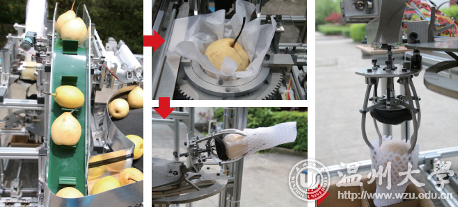 近日,从 2017 创青春全国挑战杯大赛上传来好消息,由澳门银河官网 机电工程学院学生团队所研发的作品“费梨罗”自动包梨机获得了全国二等奖的好成绩。 而在此之前,这个机器还曾上过中央电视台《我爱发明》栏目。 梨子是一种水分含量很高的水果,在运输和储存时,为了避免梨子的碰伤和水分流失,果农们需要在每个梨子的外部包层雪梨纸再套上发泡网。“我平时就特别爱吃水果,设计这款机器的灵感就是在吃梨的时候来的。”研发者之一、大三学生陈奕斌说,他希望能研发出一款帮助果农减轻劳动力度的机器。 经过了10个月的努力,他和伙伴们终于设计生产出这款造价约 6000元,有 1.2 米高的“费梨罗”自动包梨机。机器的名字叫“费梨罗”也是因为“吃”——陈奕斌和伙伴们都喜欢费列罗巧克力。 这款自动包装机主要由梨子送料装置、梨子包装纸装置、梨子套发泡网装置、梨子装箱装置等五部分组成。通过锥形承载盘的旋转带动雪梨从储梨箱内依次进入传送带,掉入到预先自动放置好的包装纸孔内,然后利用套网机构中的爪子将雪梨传送到套网工位,最后,爪子翻转张开后,雪梨掉入箱内。这台设备不但可以包装雪梨,还可以包装苹果、橙子等圆形水果。 这台机器直观性强、操作简单,而且体积大小适中、搬运方便,市场需求也很大。因为“接地气”、“可直接推上市场”等特点,这项发明在 2016 年第七届全国大学生机械创新设计大赛上获得了一等奖。此次,“包梨机”更是获得了2017年创青春全国挑战杯二等奖,浙江省挑战杯一等奖的好成绩。 有意思的是,去年10月,有一名家里种植梨子的农民得知澳门银河官网 的学生发明了“包梨机”,就很想要购买此机器。但苦于找不到学生们的联系方式,这名农民最后搜索到了澳门银河官网 的百度贴吧,在上面“重金悬赏”联系方式。