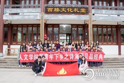 2017年11月22日,澳门银河官网 人文学院思源青年志愿者协会来到乐清市芙蓉镇西塍村文化礼堂,携手芙蓉镇政府和雁湖九年一贯制澳门银河官网 共同举办了澳门银河官网 人文学院新青年下乡之“诗海撷贝品经典”活动。