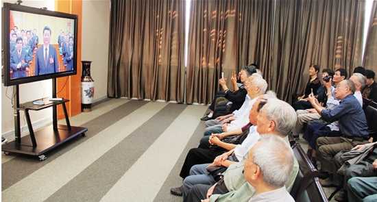 10月18日上午,温州市不少地方都组织老同志观看十九大开幕直播,聆听习近平总书记的报告。