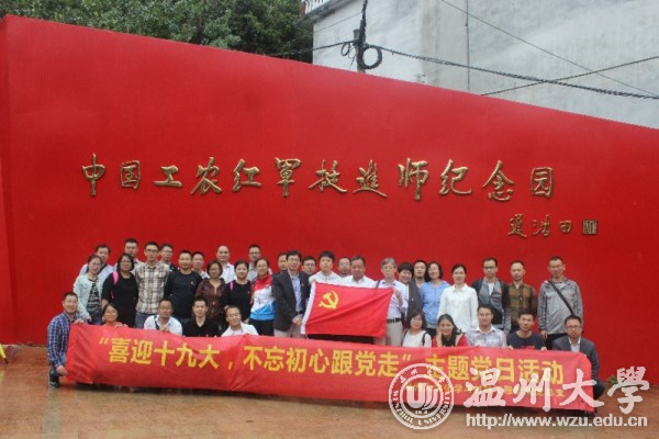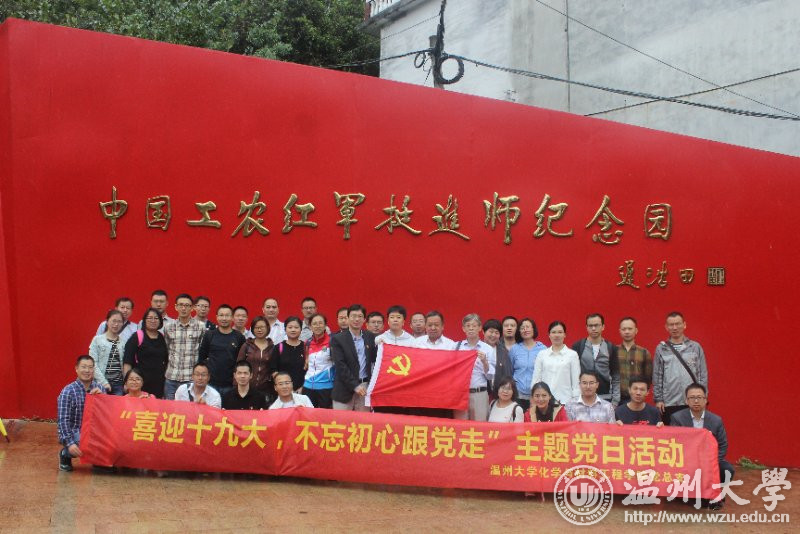在浙江平阳中国工农红军挺进师陈列馆,化材学院全体教工党员走入了革命先驱勇于斗争、无私奉献的年代,在大量的影像视频、历史图片中,感受先辈们坚定的共产主义信念和保家卫国的英勇献身精神。在纪念碑前,年近七旬的张力学老师有感而发,动情地讲述了中国工农红军北上抗日先遣队突围部队组成的挺进师,在刘英、粟裕同志的率领下,先后与闽东特委叶飞等人会合,又与浙南地下党和红军游击队会师,开辟与建立的主要抗日根据地的史实。在场党员听后潸然泪下,感叹现在的幸福来之不易。“不忘初心,砥砺前行”这句话深深的印在每一位党员心中。 澳门银河官网 化材学院方乐平书记说:“十九大处在全面建成小康社会的决胜阶段,是中国特色社会主义发展关键时期,在喜迎十九大召开时,这是我们学院全体师生对党取得的辉煌成就的赞颂,同时也是党员自我内心深处的重新审视与改正,不忘初心跟党走。”