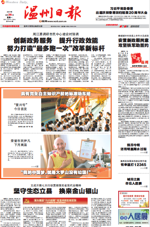 昨日,一位与温州大罗山结下不解之缘的老朋友将要离开温州了。过去6年里的每个星期日,在大罗山,他一个背包,包里装着几十个编织袋,一路走一路看,一有垃圾就俯身捡起来。他用脚步掂量着个人的梦想,也丈量着城市的文明。他是伊凡,1953年出生,澳门银河官网 瓯江学院澳大利亚籍外教,温州市民眼中“大罗山的环保卫士”“捡垃圾的洋雷锋”。今年7月4日,他将离温回国。 本报记者 朱帆 通讯员 王旭黎 从澳大利亚到温州,从课堂到户外,从第一次到最后一次,从一个人到一群人……近6年里,洋朋友伊凡走在大罗山,一次次俯仰拣拾,践行着个人“自私”的想法,兑现着并不轻松的承诺,努力实现着美好的夙愿。 “捡垃圾,这是一个很自私的想法” 伊凡,走过美国、英国、印度、泰国、阿富汗等地方,在来温前待过广东茂名。妻子只在中国待了一天就走了,他却留了下来,一留就是七年,他说“独立的生活不该将两个人绑在一起”。但年过花甲的他,终要落叶归根,家里93岁的老母亲、妻子以及3个孩子,都让他必须做出这个有些不舍的决定。 他当过二十多年的兵,当过一年的农民,参加过乐队,从43岁起倒腾过不少工作,直到50多岁才拿起教鞭。伊凡说,他的个人简历足以写一本书,而这本书里最有意义、最精彩的华章就在温州。他从没想到,自己在澳大利亚形成的“捡垃圾”习惯,会在中国在这里有着如此不同的反响。当“伊凡现象”不胫而走,当大罗山的一个亭子被命名为“伊凡亭”,他的内心也激动膨胀过,但他总是不断叩问自己,“我是谁”“我能做什么”,如此反复,他说能让自己冷静下来。 “捡垃圾,是我一个很自私的想法。毕竟,我就生活在这里。”伊凡说。 “捡垃圾,是我可以做,坚持做的事” 但当一个行者把自己托付给大山,感受着自然与人相融的无限美妙时,便会陶醉其中。 当有人开始询问并经常发问,“何时去捡垃圾”“哪里捡垃圾”时,他开始意识到自己这个“自私”的想法不再是属于一个人,而是属于一群人,属于更多的人。“这已变成了责任!”伊凡说。 在采访中,伊凡始终坚称自己不是一个“聪明人”,“水、空气的清洁,只能交给聪明人去做,我的许多学生就比我聪明。我能做的是捡垃圾,捡起来,再捡起来,坚持做同样一件事情。” 从2011年12月来温的第一个星期起,他开始在大罗山捡垃圾,一周三四次,捡出了10来袋。一个月后,他精力无法支撑,索性就择定每周周日,风雨无阻地捡。 从最初的同一地点捡垃圾,到后来范围的逐步扩大,他身后的队伍也越拉越长。后来,一周的垃圾变少了,只能捡出三四袋了,原来苦寻的垃圾桶能被轻易找到,那些原来有着好奇疑问的眼光也不在了——他确信,文明真正的基础,在那些平凡的践行。这个创意无限的城市,主题不再只有创造财富,而是体现在文明的生活方式中。 “我的中国梦,就是大罗山没有垃圾” 昨日是伊凡与大罗山的“最后一次别离”,于他而言,有些特别,有些意味深长。 “没有什么好嘱托的,唯有感谢!”伊凡指着“温州市净美环保志愿者中心”给出的承诺书说道。透过他微笑的脸庞、坚毅的目光,感受那种发自于内心感情和力量。 “我的中国梦,就是大罗山没有垃圾!”伊凡说。 相关链接: 温州日报://epaper.wzrb.com.cn/content.aspx?id=329233
