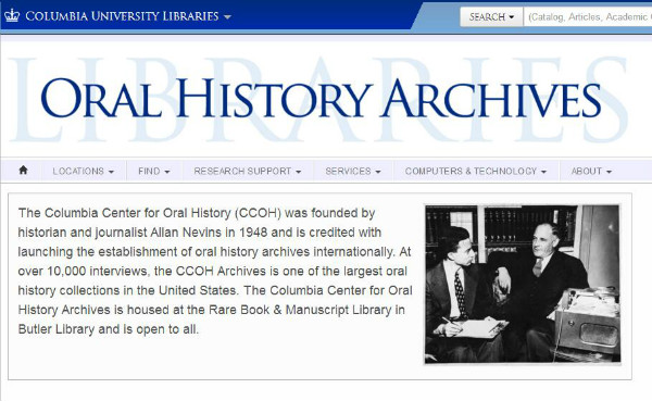 需要补充的是,2011年6月1日,哥伦比亚大学口述历史研究室正式更名为哥伦比亚大学口述历史中心(Columbia Center of Oral History)。而为区隔口述历史中心的研究与档案功能以及加强各自的发展,哥大又于2013年11月成立分别隶属于哥大文理学部的哥大口述历史研究中心(Columbia Center for Oral History Research)和隶属于哥大图书馆善本与手稿部的哥大口述历史档案中心(Columbia Center for Oral History Archives)。