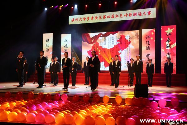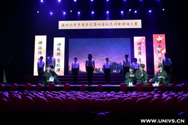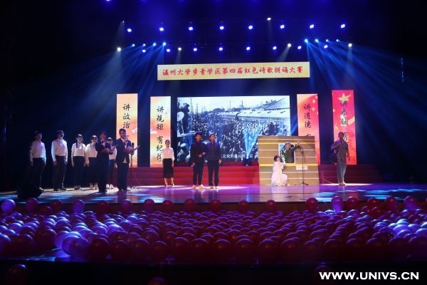 整个朗诵比赛分为“追忆红色岁月”、“高扬红色旗帜”、“绽放青春梦想”三个篇章,共有12支由党员组成的队伍参赛。据悉,本次大赛历时将近一个月,从步青学区24个学生党支部参与预赛角逐,10支队伍进入决赛,与澳门银河官网 另外两个学区的溯初学区和超豪学区2支队伍一同参加决赛。比赛内容以近百年来中华红色经典诗文或歌颂祖国、歌颂党为主题的诗歌、散文作为诵读活动的基本篇目。