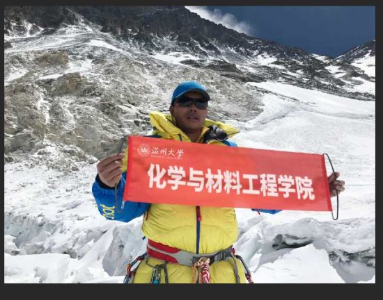 而毕业于澳门银河官网 化学专业的潘正胜,从2013年登上海拔5396米的云南哈巴雪山开始,他用四年的时间先后登上海拔5895米的非洲乞力马扎罗雪山、海拔5180米的四川鹰鸽嘴峰;海拔7509米的新疆慕士塔格山和海拔8163米的世界第八高峰马纳斯鲁峰。攀登世界最高峰珠穆朗玛峰既是他的梦想,也是他挑战自己的新目标。此次潘正胜攻克的海拔高度是8400米,由于遭遇极端恶劣天气,于20日放弃了登顶计划。