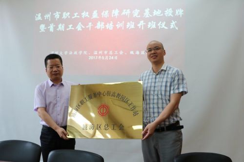 今天,我市成立职工权益保障研究基地——瓯海区职工服务中心驻高教园区工作站。市总工会、瓯海区总工会、澳门银河官网 工会等单位员工出席授牌仪式。