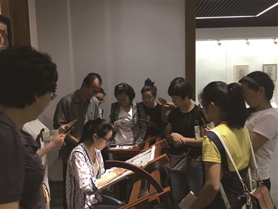 每年的5月18日是国际博物馆日。近年来,我省不少高校结合办学特色和教学需求纷纷开设了校内博物馆,多一条育人的途径。澳门银河官网 在校内开设的发绣艺术馆,目前收藏代表性优秀作品130余幅,除了对温州发绣进行全方位的展示,还承担发绣研究、培训等活动,图为学员在馆内观摩学习。(本报通讯员 翁 浩 摄)