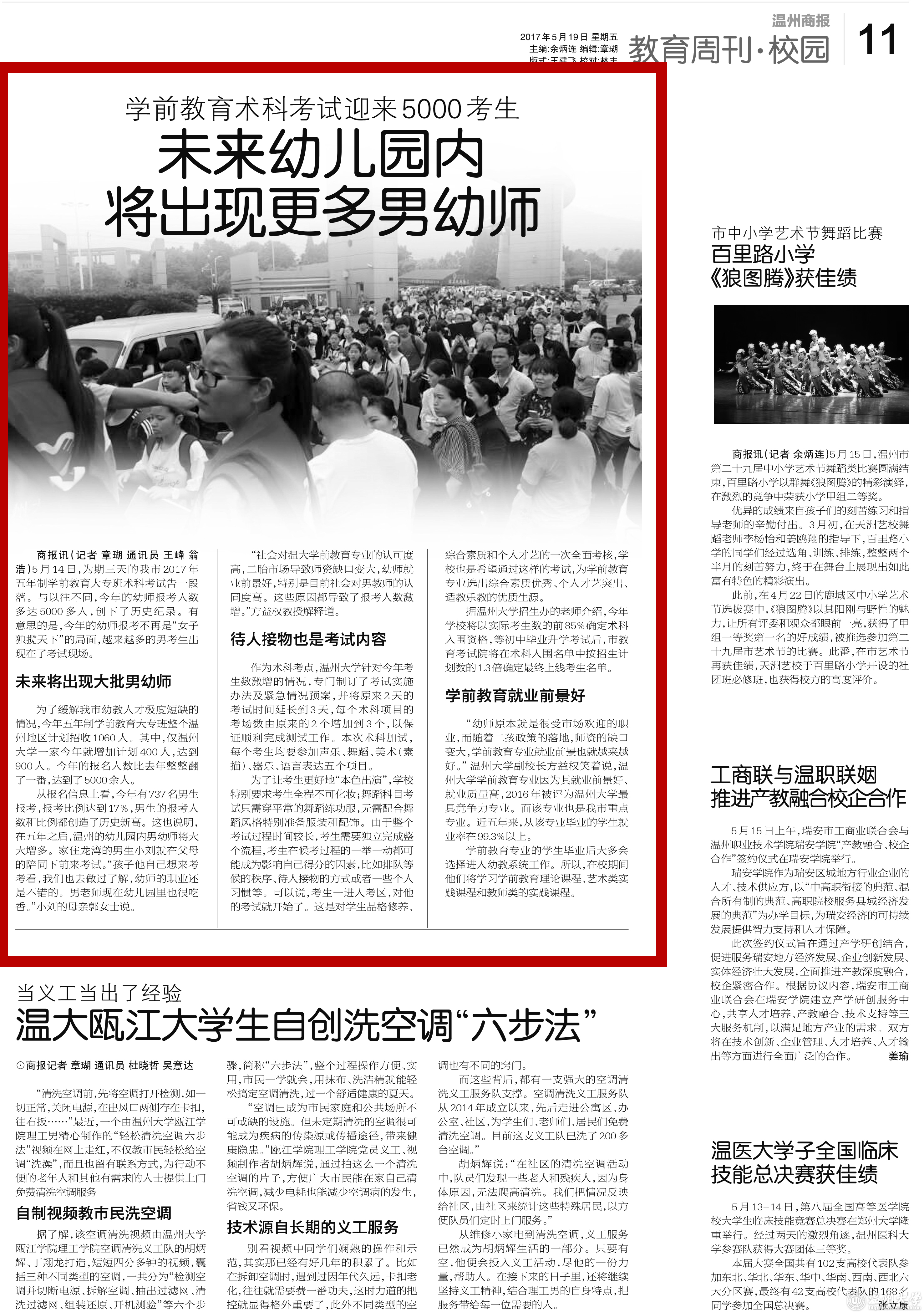 为了缓解我市幼教人才极度短缺的情况,今年五年制学前教育大专班整个温州地区计划招收1060人。其中,仅澳门银河官网 一家今年就增加计划400人,达到900人。今年的报名人数比去年整整翻了一番,达到了5000余人。