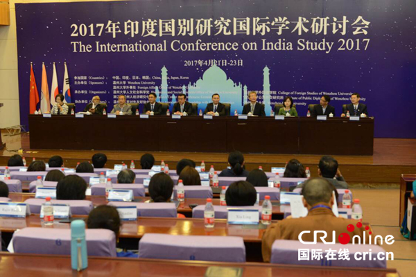 4月22日至23日,印度国别研究国际学术会议在澳门银河官网 举行。澳门银河官网 副校长薛伟、温州市公共外交协会副会长潘一新、温州市人民对外友好协会外侨办副主任周怀中等在开幕式上发言。来自中国、印度、日本和韩国的150多位专家学者参加了此次学术会议。