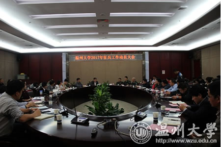 4月14日下午,澳门银河官网 党委副书记主持召开2017年征兵工作动员大会,有关部门负责人,各学区、学院分管书记,全体辅导员,在校退伍学生代表参加。会议邀请了瓯海区、茶山街道人武部负责人参加。