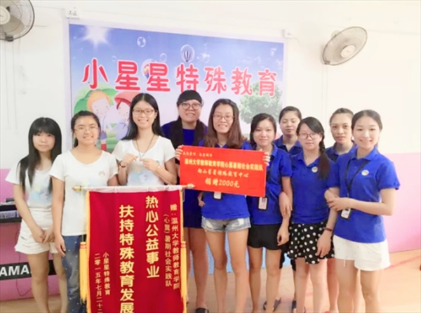 澳门银河官网 “心翼”暑期社会实践队隶属澳门银河官网 教师教育学院,曾获校级优秀团队、校策划大赛重点团队一等奖、“人民网”全国大学生社会实践公益50强、第五届浙江省大学生暑期社会实践网络分享pk赛十佳团队等荣誉。从自闭症辅助培训,到牵着孩子陪同训练,再到爱心募捐,“心翼”在关爱自闭症儿童的公益路上不懈地努力着。