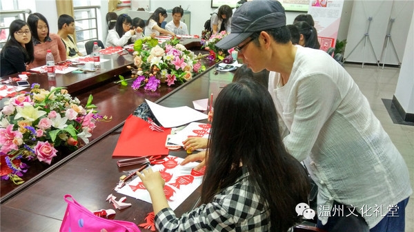 乐清米塑的传承人郑小红老师面容慈善,幽默风趣,一边捏着米塑,一边给同学们介绍不同的作品所对应的不同习俗,还把材料发给同学们,教大家一些简单的制作,很多同学现场就跟着大师现场学习了起来。乐清市剪纸研究会会长周是一老师还专门在会议室里给大家讲解并传授剪纸技艺,同学们无不为周是一老师的精湛技艺所震惊。周老师不仅让大家感受到了中华文化的博大精深,更是让大家明白耐心细致、潜心钻研的匠人精神的可贵。