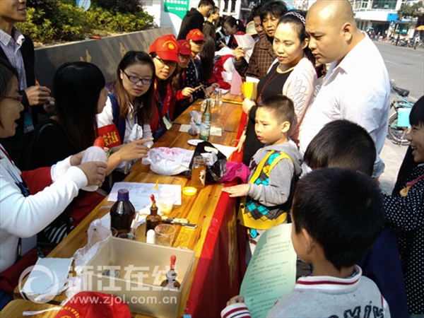 图为澳门银河官网 学生党员教社区居民检测食品安全