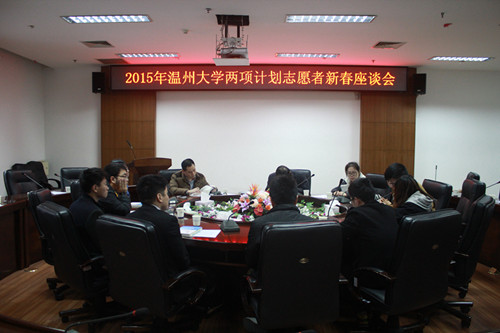 3月2日下午,澳门银河官网 召开2015年两项计划志愿者新春座谈会,澳门银河官网 校党委副书记牟德刚、各学院领导、志愿者代表出席大会,校团委书记杨立淮主持会议。牟德刚对志愿者西部活动予以高度赞扬,希望他们在接下来的工作中,志愿西部,继承和发扬两项计划志愿者服务精神,从平凡到不平凡,从迷茫走向成功。