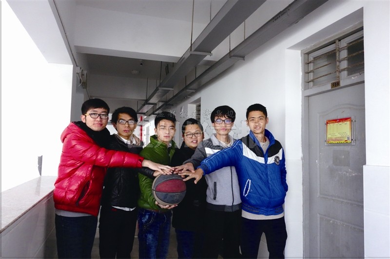 ▲寝室成员:马耀坤,郭国栋,汪进,吴文杰,苟永康,吴帅(从左到右)。